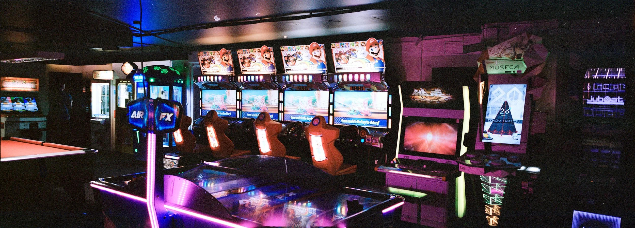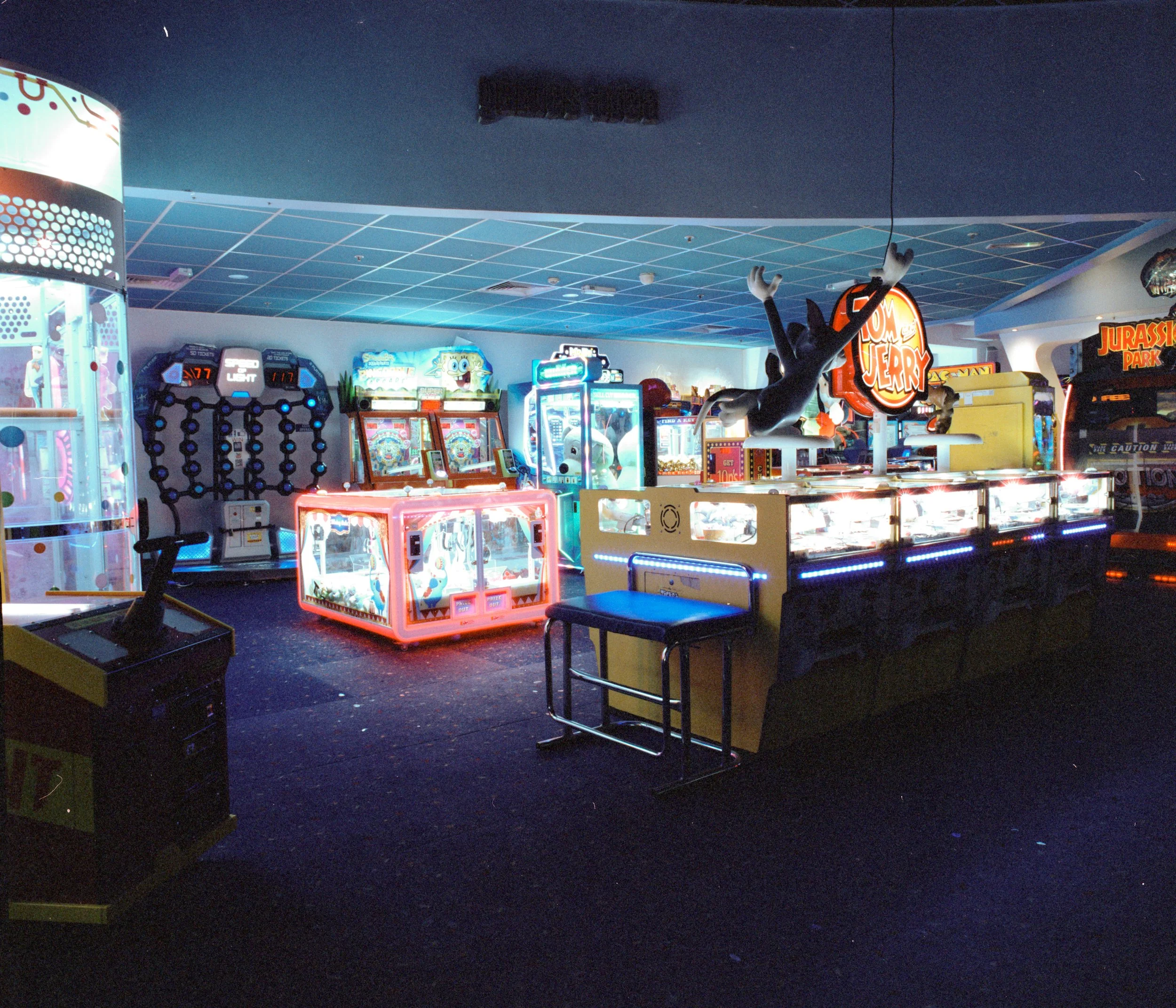 This series challenges arcades' perceived obsolescence through documenting and celebrating the few remaining spaces in the city, from repurposed warehouses to casino basements. Each photo aims to transport the viewer and encourages them to be placed in the arcade, getting lost among the bright lights and overwhelming sensory experience. The work is created using primarily analog techniques and presented to replicate the tactile aura of each venue and machine.